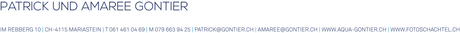 E-Mail an Patrick E-Mail an Amaree Webseite von AQUA GONTIER AG Fotowebseite von Patrick Gontier